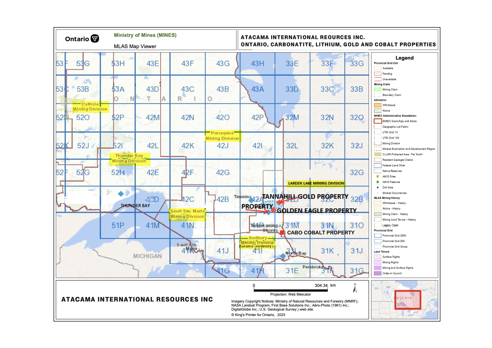 ATACAMA INTERNATIONAL ONTARIO PROPERTIES: